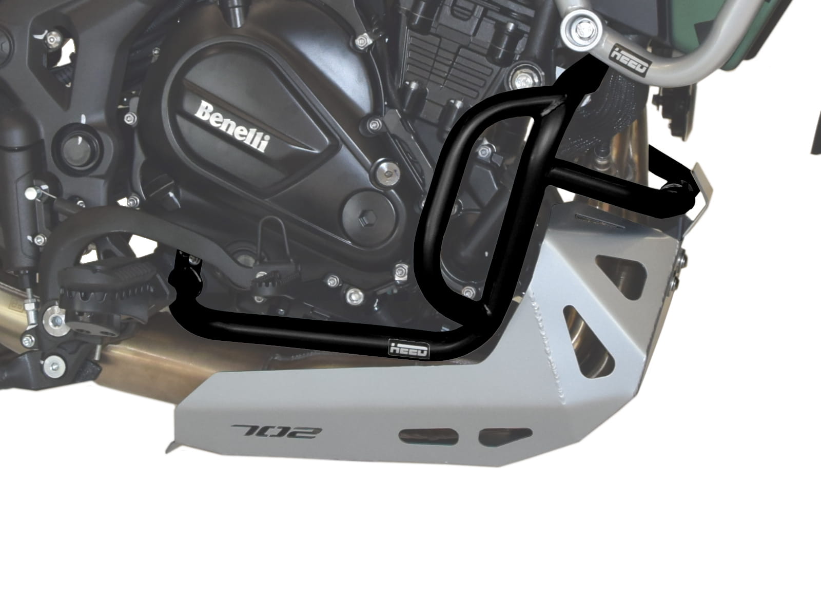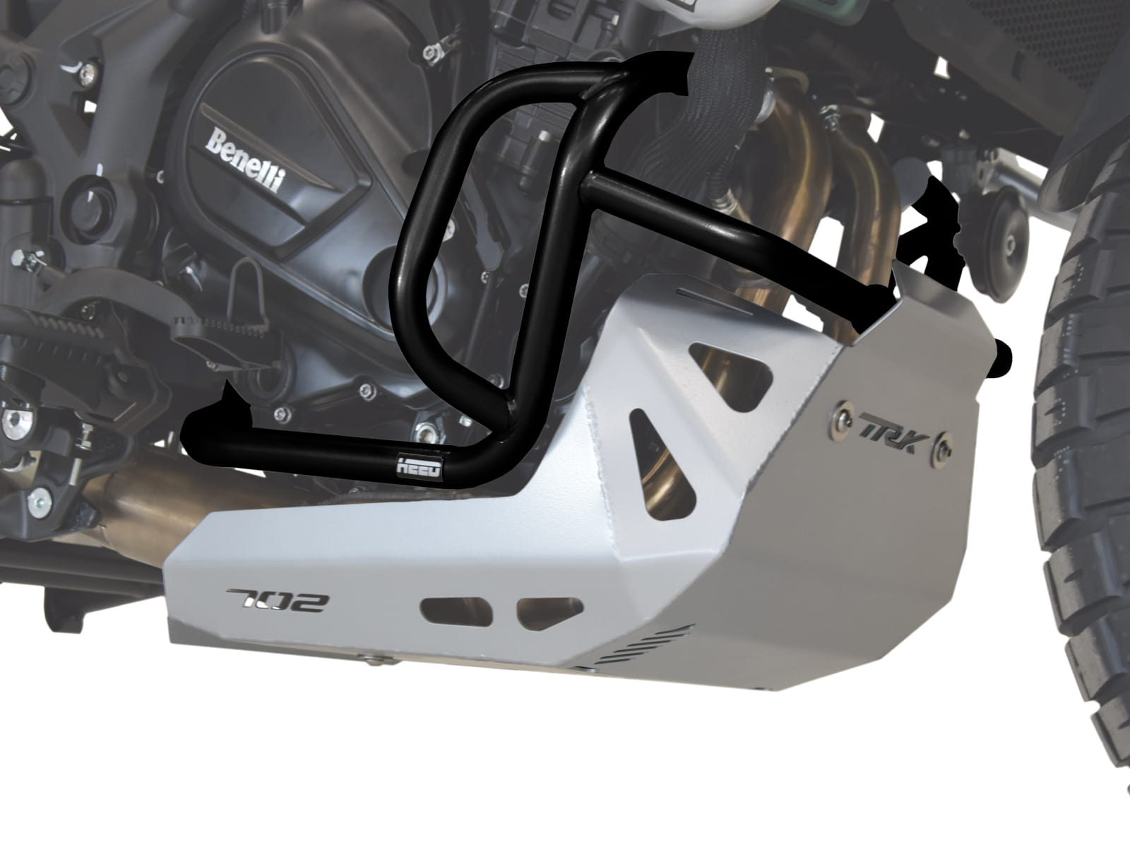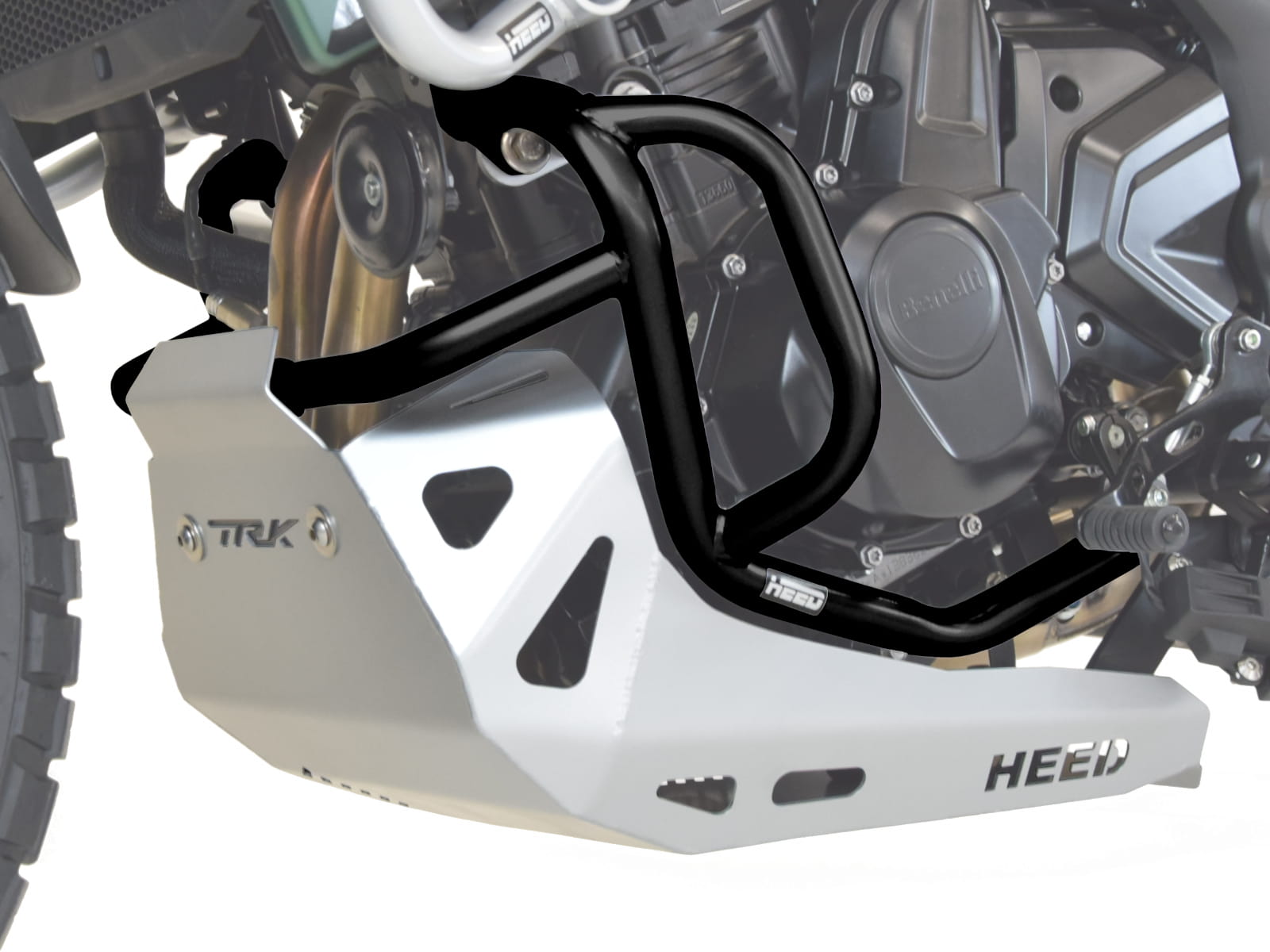 Padací rám HEED Benelli TRK 702/ 702X - spodní , černý + Kryt motoru ocel stříbrný