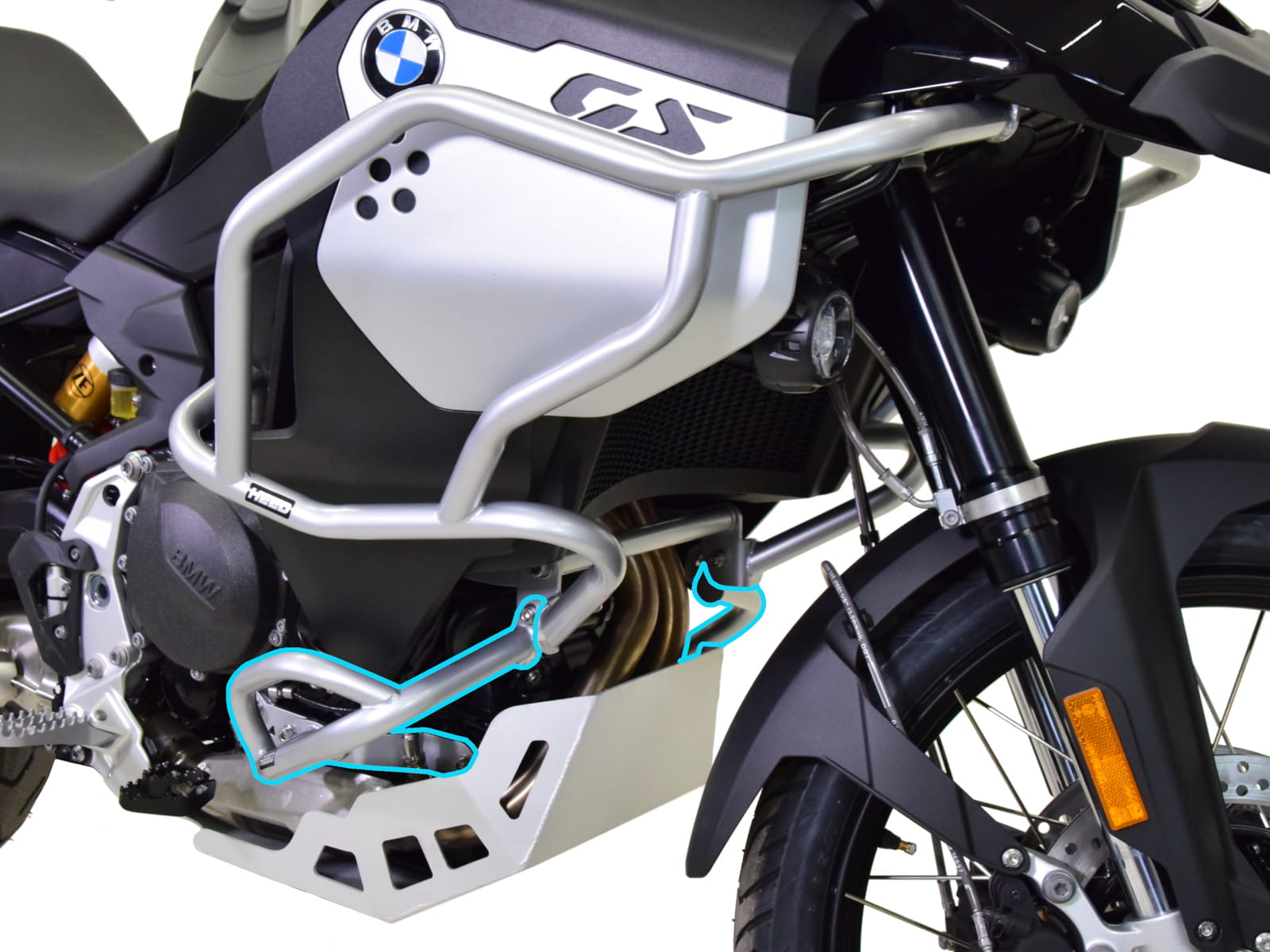 Důležité upozornění: Dolní padací rámy HEED pro BMW F 900 GS Adventure vyžadují instalaci společně s horními padacími rámy HEED z řady BMWUP0307. Použití bez horních rámů není možné.